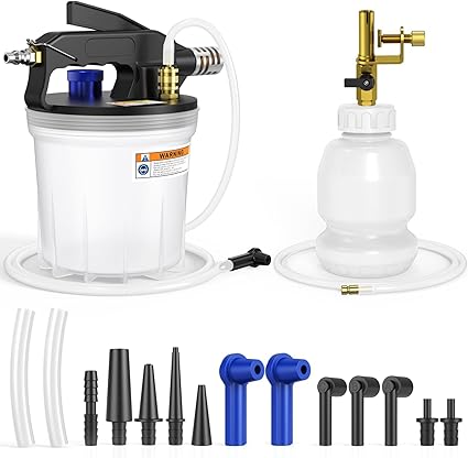 With its combination of a large capacity, durability, and ease of use, the BILITOOLS brake bleeder kit provides a professional-grade solution for brake fluid servicing. It stands out as a reliable choice for those seeking efficient and clean brake system maintenance. For comparison, manual kits lack vacuum assistance and typically require more effort, making this pneumatic option more suitable for frequent use and larger vehicles.